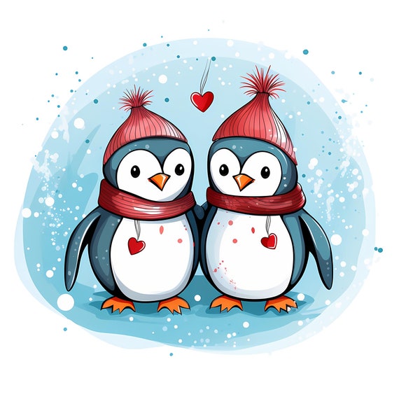 Cute Penguin Couple Watercolor PNG Clipart, Happy Penguin Couple, Penguin Nursery Wall Art, Card and Journal Making, Baby Shower, Commercial by AlienArtRevolution